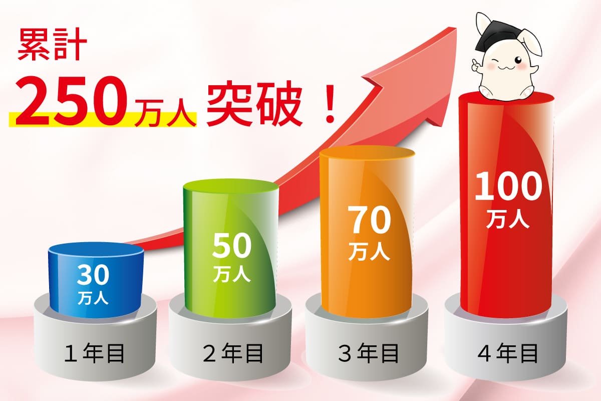 運営開始から4年で、ご利用者数250万人を突破し、年間ご利用者数は100万人を突破いたしました。